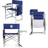 The NHL Sports Chair by Picnic Time is arguably one of the most popular portable outdoor chairs on the market. It features a lightweight, portable folding design with a sturdy aluminum frame that has an adjustable shoulder strap for easy transport to your destination. If you prefer not to use the shoulder strap, the chair also has two sturdy webbing handles that come into view when the chair is folded. The extra-wide seat is 19-1/2 inches, and is made of durable 600D polyester with padding for extra comfort, and the armrests are also padded for optimal relaxation. The backrest on the chair features your favorite team's logo so you can show your team spirit and your love for hockey. On the side of the chair is an accessories panel that includes a variety of pockets to hold such items as a cell phone, sunglasses, magazines, or a scorekeeper's pad. This chair also includes an insulated bottled beverage pouch and a zippered security pocket to keep valuables out of site. A convenient side table folds out and will hold up to ten pounds of weight, making it perfect for holding food or drinks. On the back panel of the chair you'll find a built-in fabric loop intended to secure the pole of an umbrella. Look for Picnic Time's sunshade outdoor umbrellas (sold separately) to create a matching set. The NHL Sports Chair makes a perfect gift for hockey enthusiasts, and those who enjoy spectator sports, RV-ing, camping, or days at the beach. Maximum weight capacity 300 pounds. Backed by the Picnic Time Family of Brands BUILT TO LAST Lifetime Guarantee.