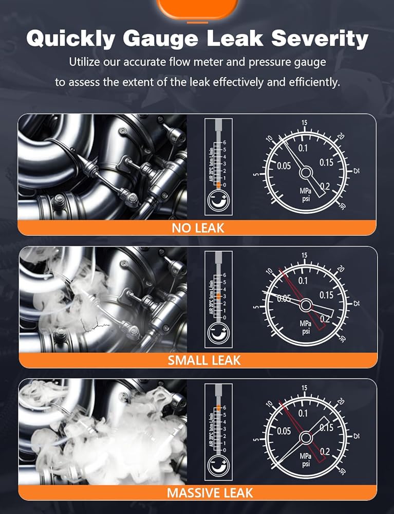 🚀【Wide Range of Applications】 The PowerScale M3 can produce a substantial amount of smoke within 10 seconds, enabling you to quickly, easily, and confidently pinpoint leak locations. It's suitable for testing pipe systems on cars, motorcycles, snowmobiles, ATVs, light trucks, and speedboats, compatible with all vehicle types .