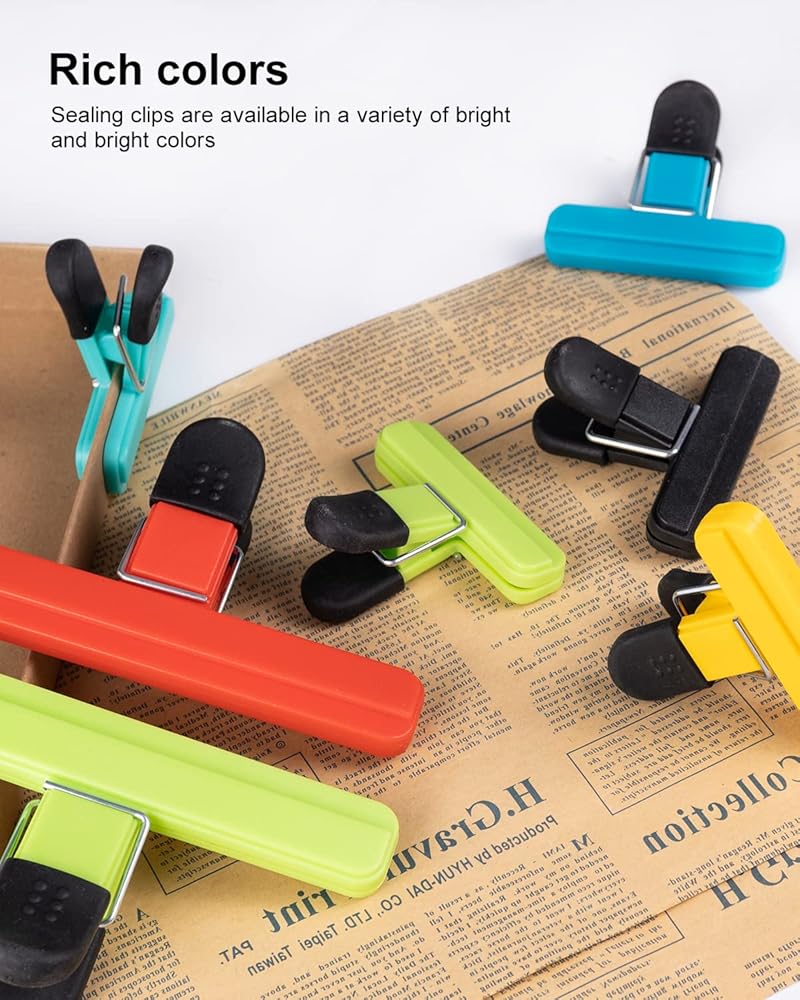 Multifunctional sealing clip: This bag clips are not only suitable for storing kitchen food such as bread, chips, nuts, etc., it can also be used to organize office documents