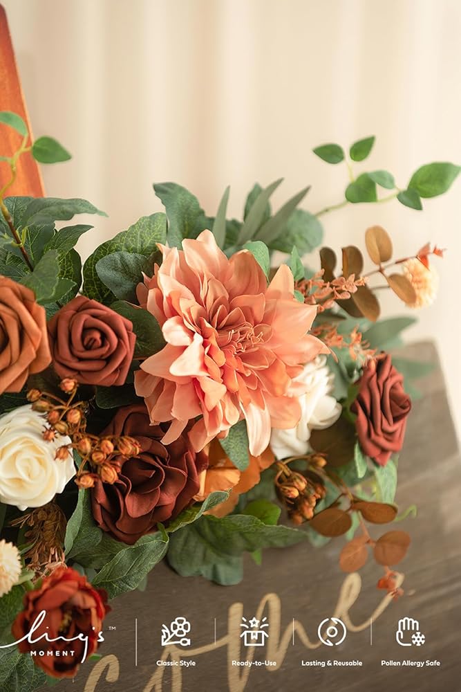 Never Wilt: These high-quality artificial wedding flowers are made of silk and foam, with artificial greenery and other accessories, ensuring that they will never wilt. The floral decorations look beautiful and lifelike at any wedding ceremony, and can be reused to decorate fireplace, baby room, door, and more for home after wedding.