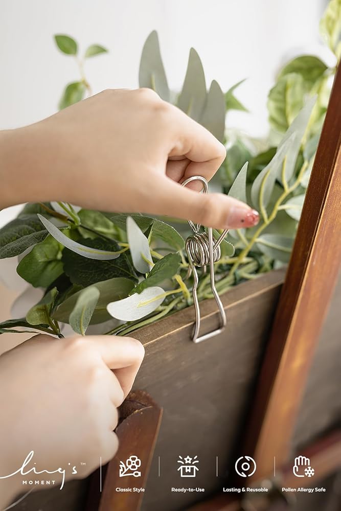 Easy to Use: The flower swag is opened easily and designed on a flexible base with iron wires inside the plastic stems for bending. It has releasable adjustable green cable zip ties and metal clips attached for easy tying to any wedding sign.