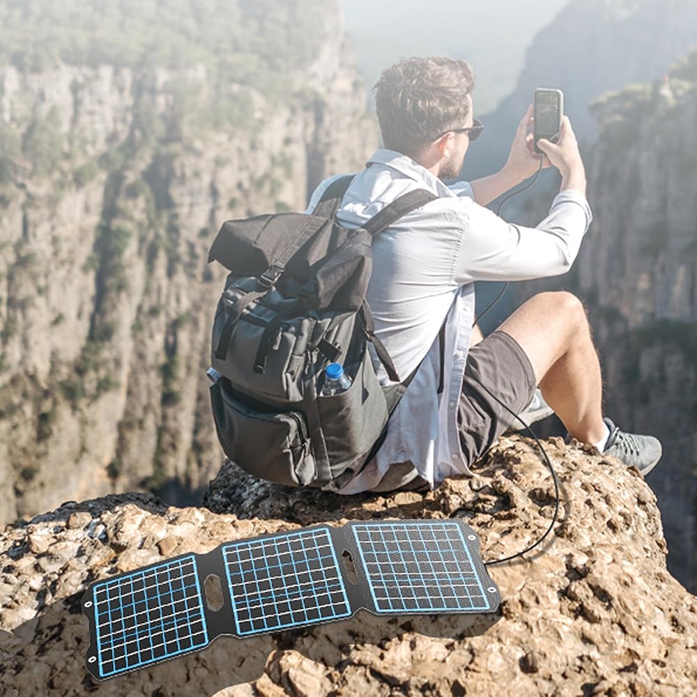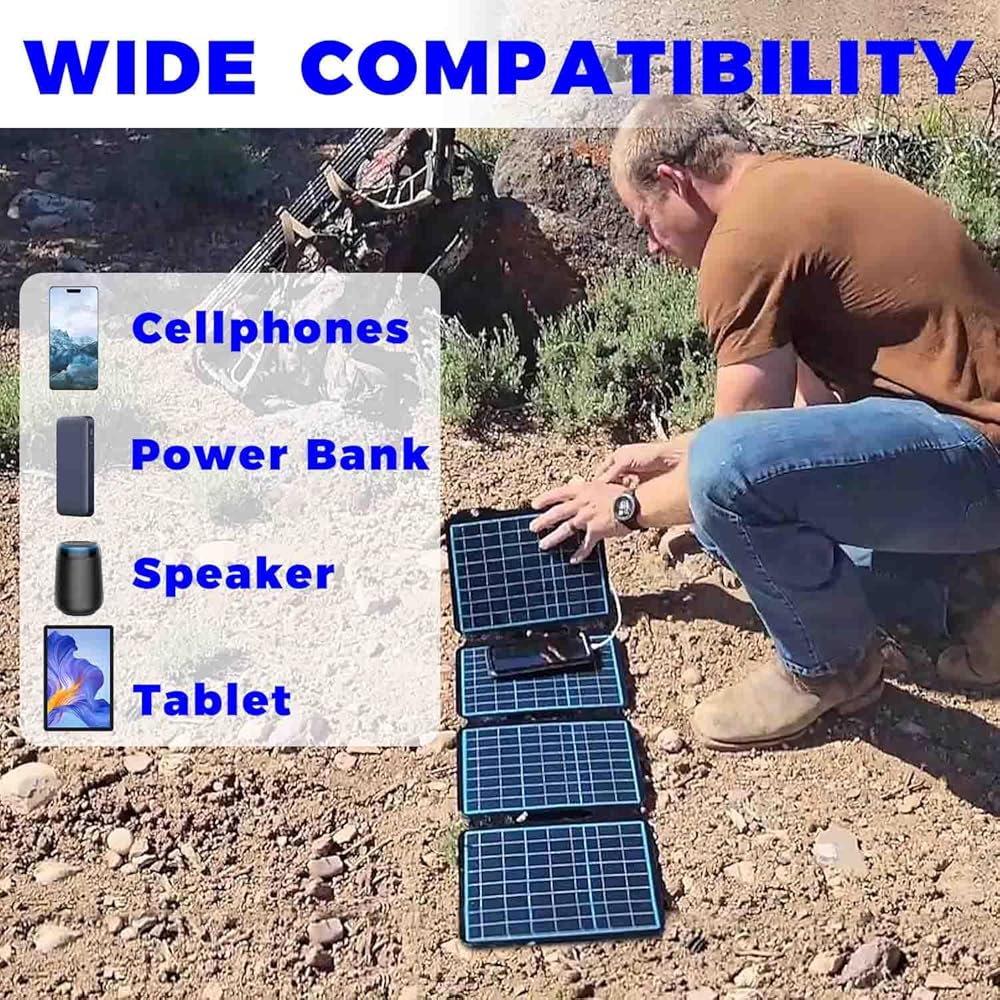 🔋【24% Efficiency & IP68 Wateproof】Solar Panels have high 24% conversion efficiency, which can convert solar energy into free energy in enough sunlight. Smart charging technology with a built-in smart chip intelligently identifies your device and provides the best charging speed according to different devices. Waterproof IP68 to ensure reliable performance in all weather conditions. (USB Port is not waterproof)