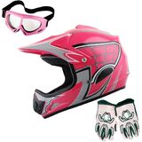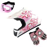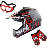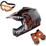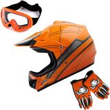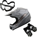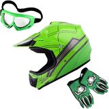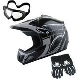 DOT Approved; Helmet Size: S (49-50 CM,19.3/19.7 Inch); Glove Size: S (Palm Width 2.3 Inch); Package Includes: One Youth MX Helmet + One Pair of MX Goggles + One Pair of MX Gloves;