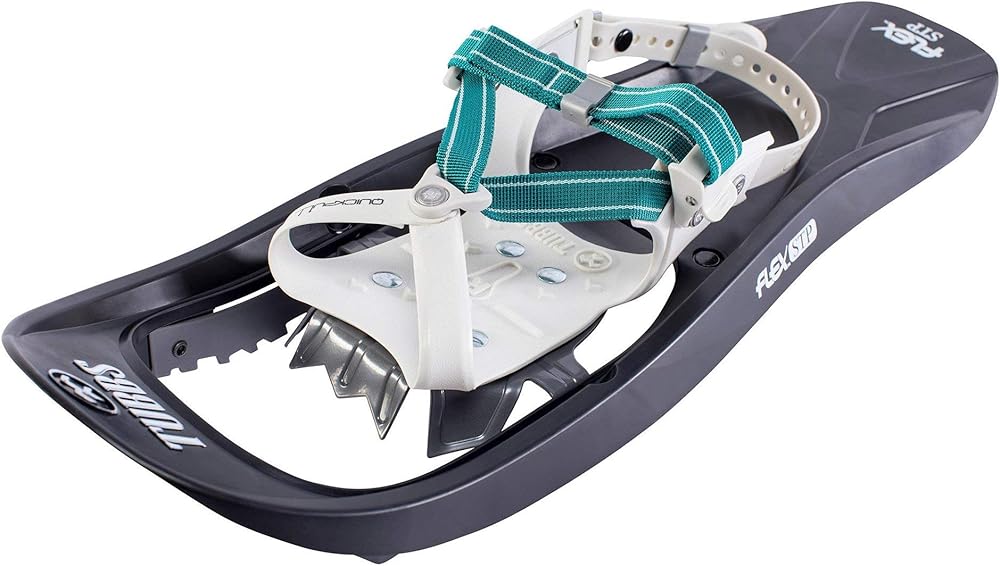 Flex tail - allows the snowshoe to roll more naturally from heel to toe. The flex tail absorbs shock from the heel STRIKE, reducing the amount of stress on joints