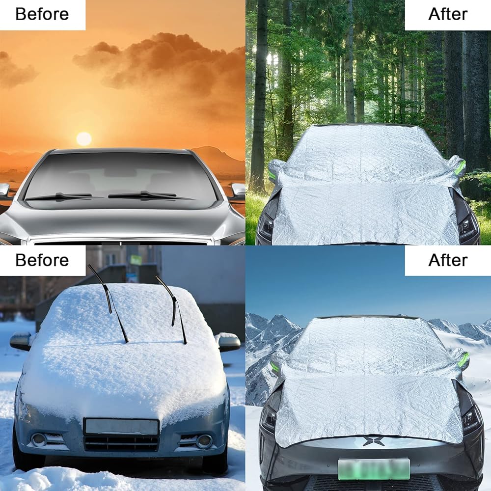 【Universal】:The car windshield cover is fits most vehicles on the market. Make sure you measure your windscreen before purchasing.