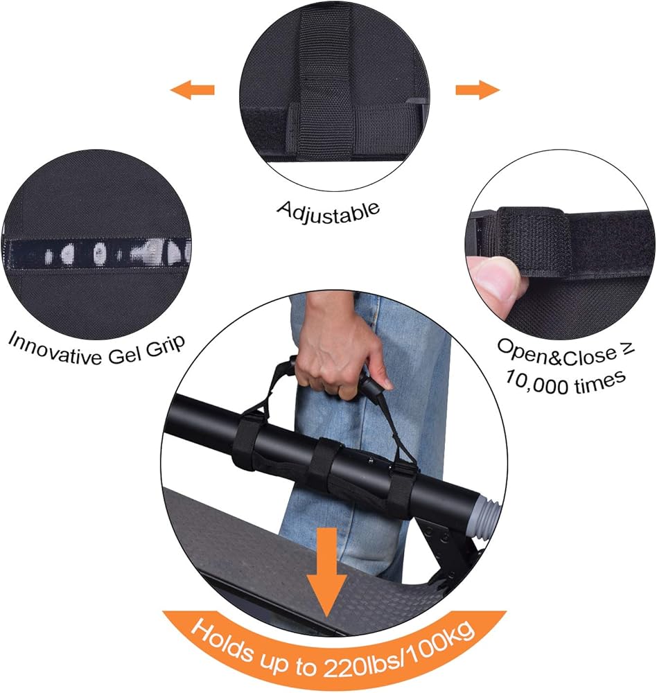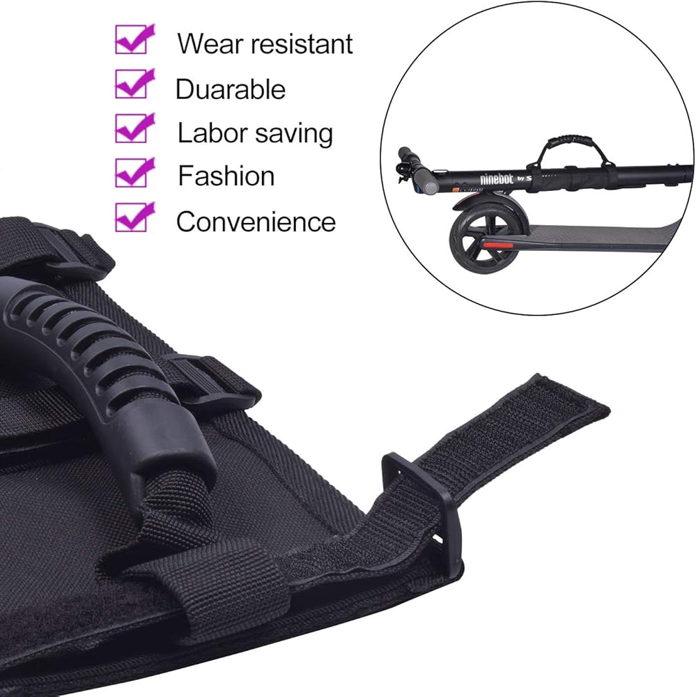 المتانة - مصنوعة من مادة النايلون عالية الجودة، متينة وقوية وخفيفة الوزن، سعة الوزن 220 رطل، رائعة لأخذ السكوتر لأعلى وأسفل السلالم أو اصطحاب السكوتر الخاص بك إلى أي مكان تريده.