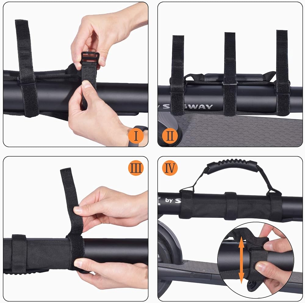 سهل الاستخدام - تصميم بحلقات مكونة من 3 أشرطة فيلكرو، يمكنك تركيبها بسهولة على عمود السكوتر الخاص بك، وحزام فيلكرو يفتح ويغلق ≥10,000 مرة.