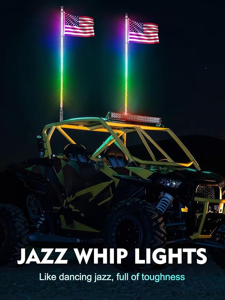 𝐓𝐡𝐞 𝐁𝐞𝐬𝐭 𝐕𝐚𝐥𝐮𝐞 𝐔𝐩𝐠𝐫𝐚𝐝𝐞 𝐖𝐡𝐢𝐩 𝐋𝐢𝐠𝐡𝐭: Super sturdy with upgraded reinforced spring base and you will never encounter the issue of whip light break when driving. What's more, we have thickened the size of the 2FT whip lights and increased lamp beads up to 300 lamp beads! The top cap of other whip lights are made of plastic, we have upgraded them to aluminum, making them more sturdy with a longer lifespan.