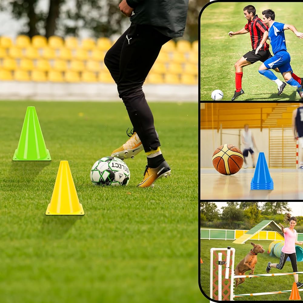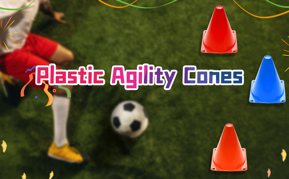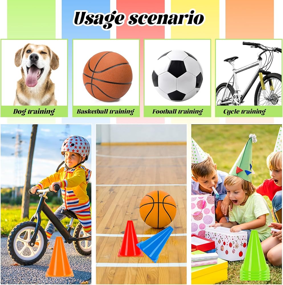 The cones are used for any activities, such as soccer, football, basketball training. Also they are perfect for party decorations, bicycle obstacle course, motorcycle training, dog training, horse training or etc.