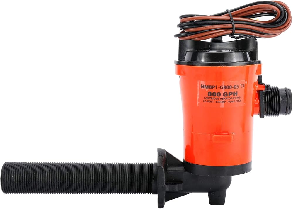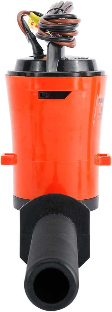 Pump is fully submersible and utilizes tin-coated, 16-gauge wire for safety 90° threaded intake, 125mm long Includes two different outlet hose tail configurations - Straight and 90°.