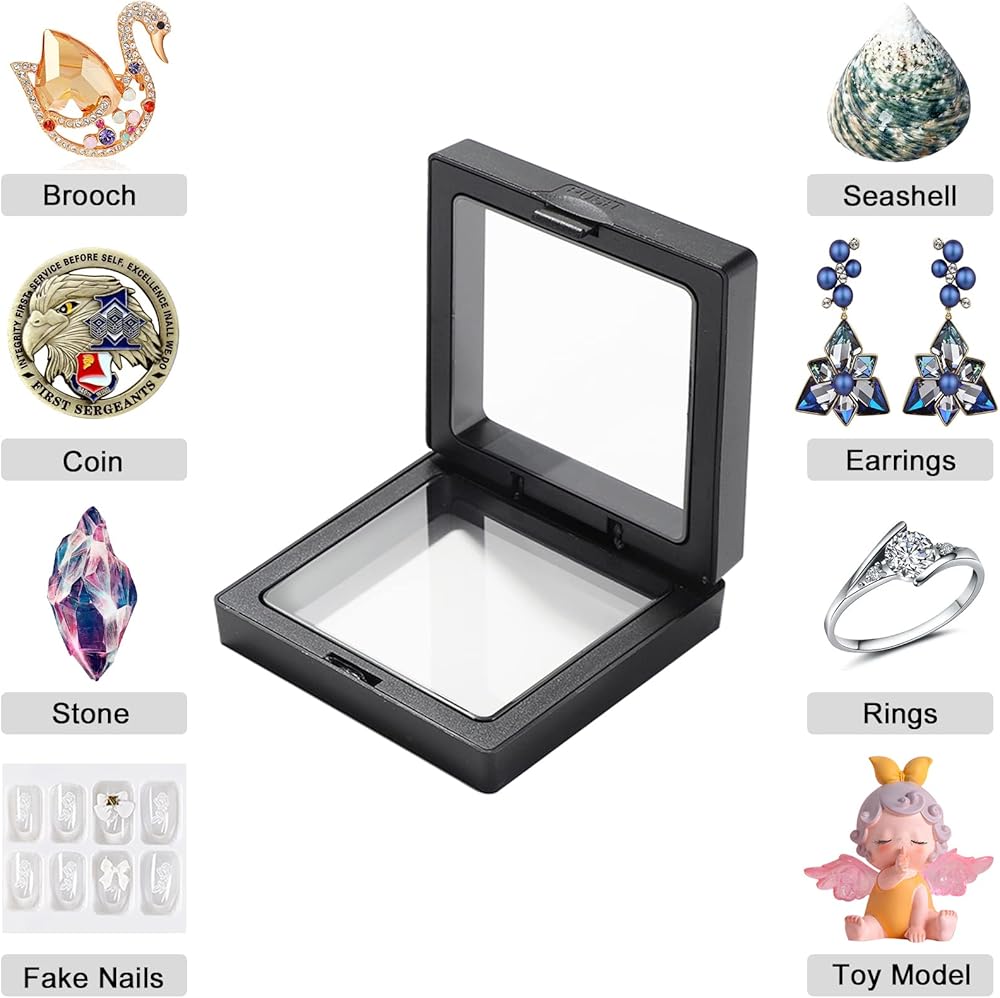 3D Floating Display Window >> Besides flat things like coins, badges, photos and stamps, small toy models, jewelry, rocks, seashells, other 3d small souvenir can also be displayed