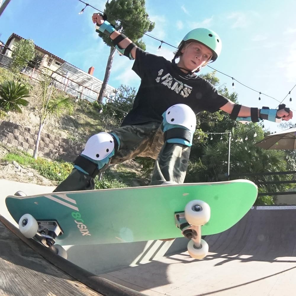 Protective gear for kids includes two wristguards, two elbow pads, and two knee pads for biking, skateboarding, rollerblade, longboard, hoverboard, scooter, skating and other outdoor sports