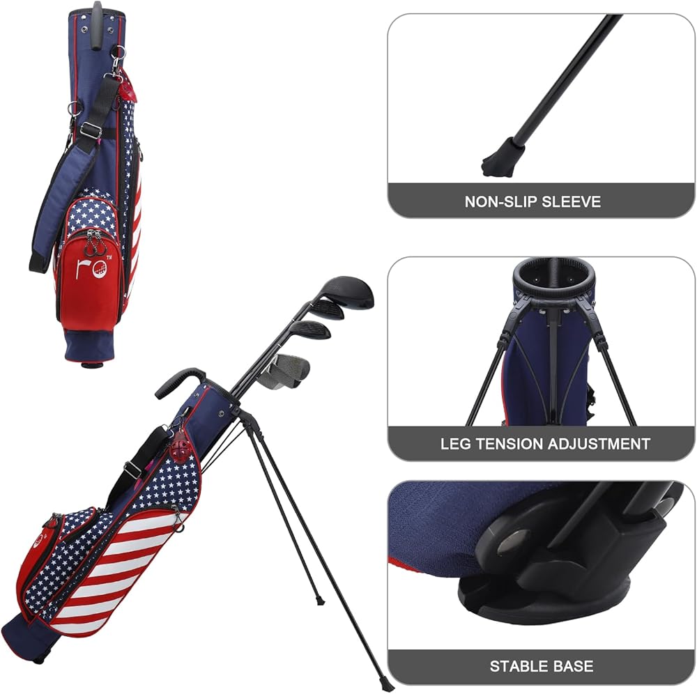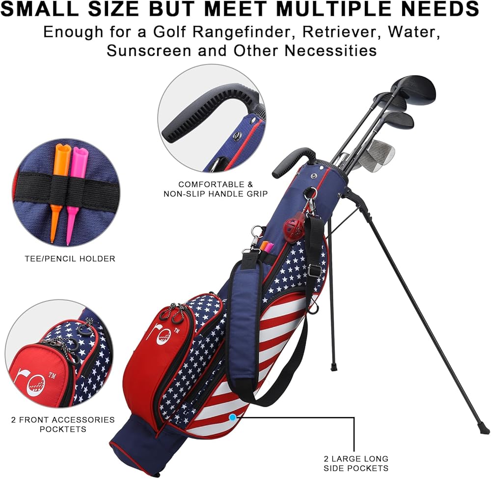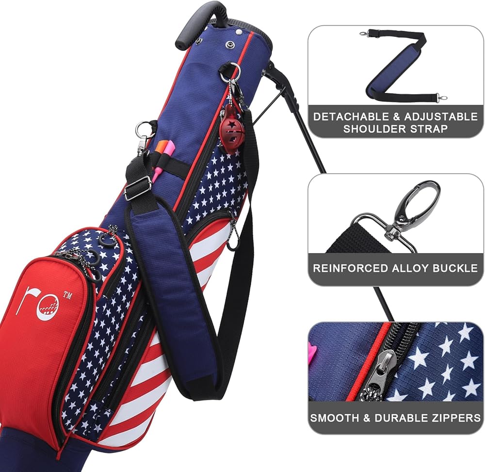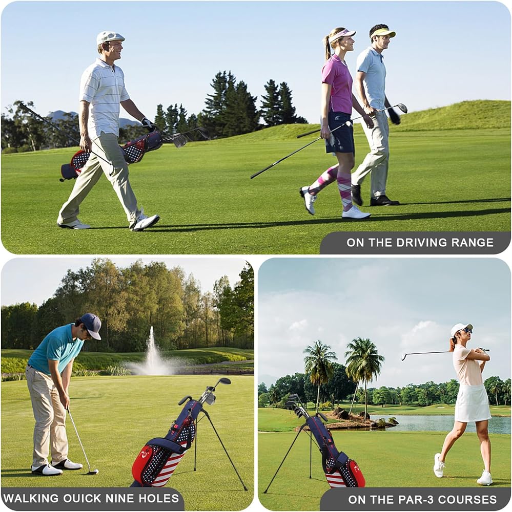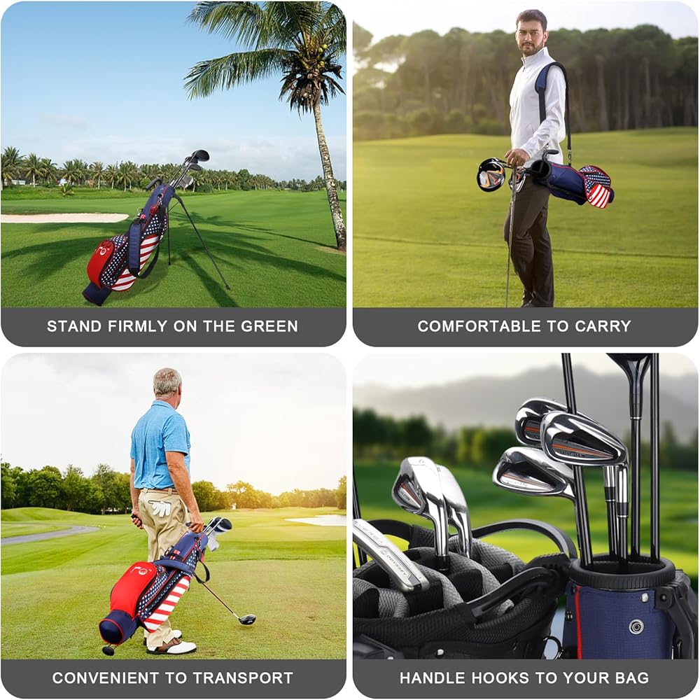 Golf Stand Bag, Lightweight Golf Club Bags with Stand, Detachable Strap, Small Carry Bags with 4 Pockets and Rain Hood, Ideal for Driving Range, Quick Nine and Par 3 Course, Gray/USA Flag