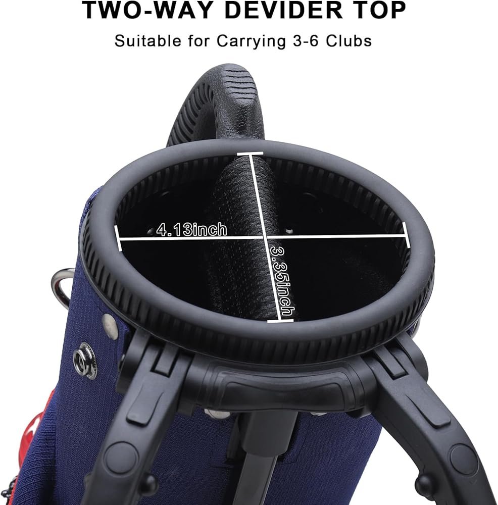 TWO-WAY DIVIDER TOP & RAINHOOD: Two compartments keep your clubs well-organized from tangling and easy to access. Our golf lightweight bag also come with a Rain Cover / Dust Cover, so wet days won't be an issue.