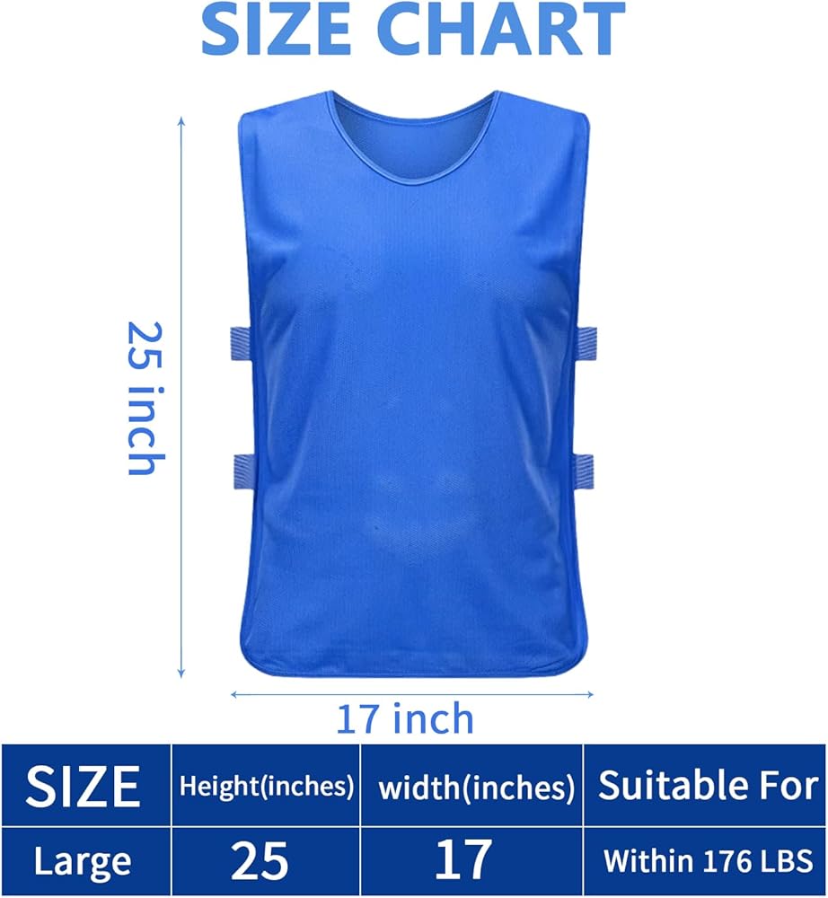 【Vest Size】: Our one-size team practice vests are 24.8 inch in length and 16.9 inch in height. Men and women with a height of 59 inches/150cm or more and a weight of 176 pounds/80kg are recommended.