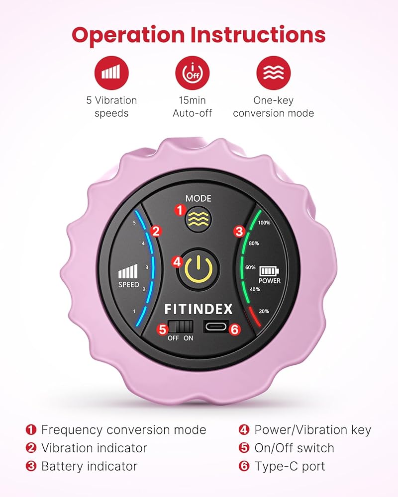 4-Speed vibration setting - This electric foam roller is equipped with 4 different vibration speeds, you can choose the right amount of speed and intensity that works for you. It is also a good choice for Christmas gifts.