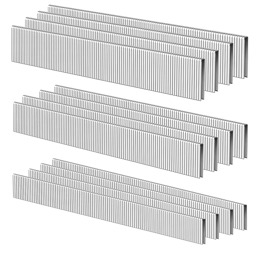 【3 variety different sizes】The 3 sizes for 18 GA norrow crown staples ( 1/4" width:1/2"-400 pcs ,3/4"-400 pcs ,1"-400 pcs ), total 1200-count.,Fasteners per stick: 100.