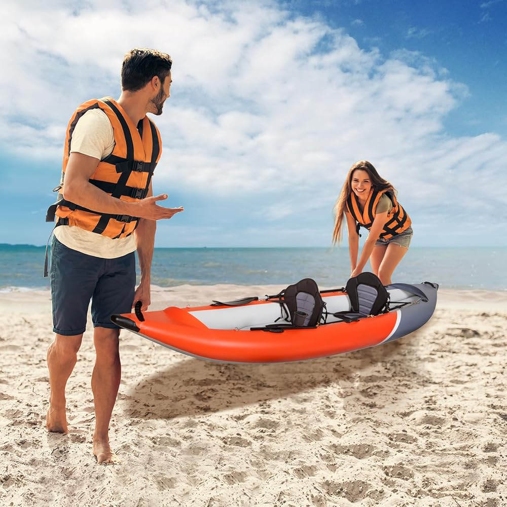 【Durable Material】Made of high-quality PVC material, the kayak has good durability and waterproofness, so you don't have to worry about water seepage or air leaks during use.Equipped with an inflation valve that is easy to inflate and deflate, and designed to prevent air leaks, making your ride more safe and reliable, so you can fully enjoy the fun of kayaking.