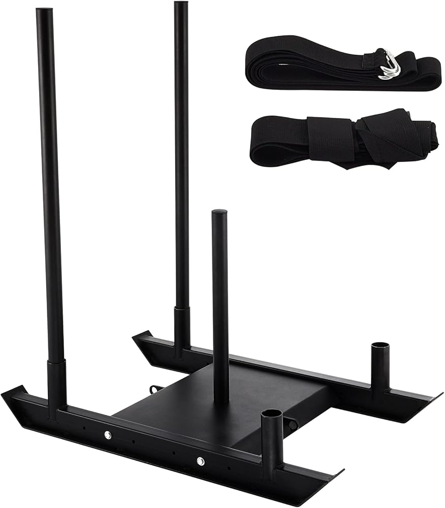 Support Bars: Our workout sled is configurated with 1" and 2" support bars, making it suitable for both standard weight plates and Olympic weight plates. With an impressive 500-pound weight capacity, you can add the appropriate weight for your training needs, effectively burning fat and calories. It offers versatility with dumbbell plates.