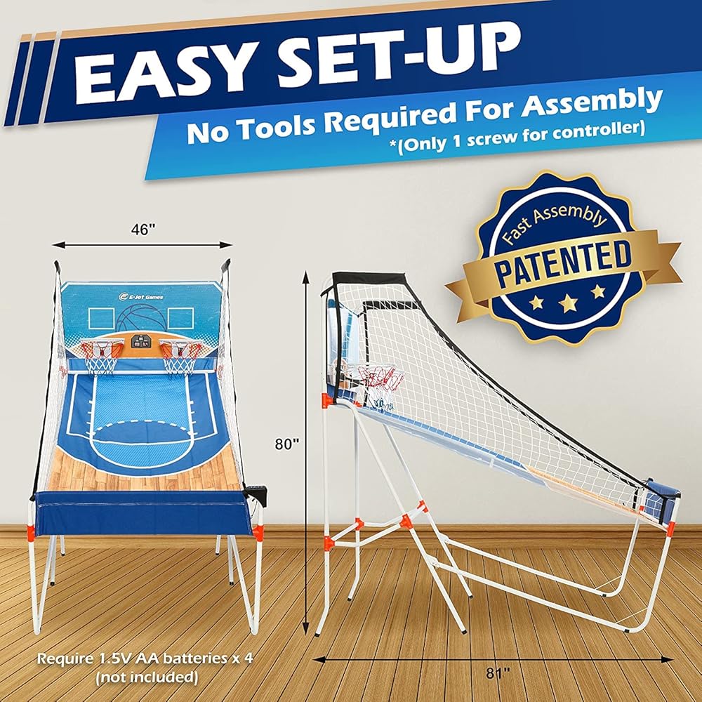 • ⚡Save Time from Assembly - Minimum assembly that only 1 screw is required, lets you quickly assemble in 10 mins. and set up the basketball arcade game almost 12 times faster than traditional one.