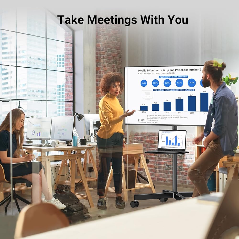 Move Anywhere: One floor TV stand meets multiple needs that you can move your TV from living room to bedroom, and lying in the bed to enjoy the shows (instead of using expensive furniture). Also perfect for commercial, use in shopping malls offices conference rooms trade shows and more