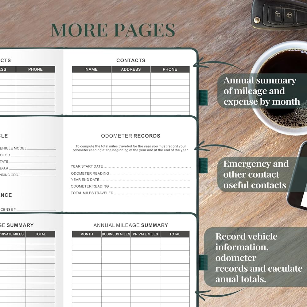 COMFORTABLE AND CONVENIENT FOR EVERYDAY USE: This mileage logbook has 128 pages with plenty of room to add notes and details, and the logbook comes with a pen loop for everyday use