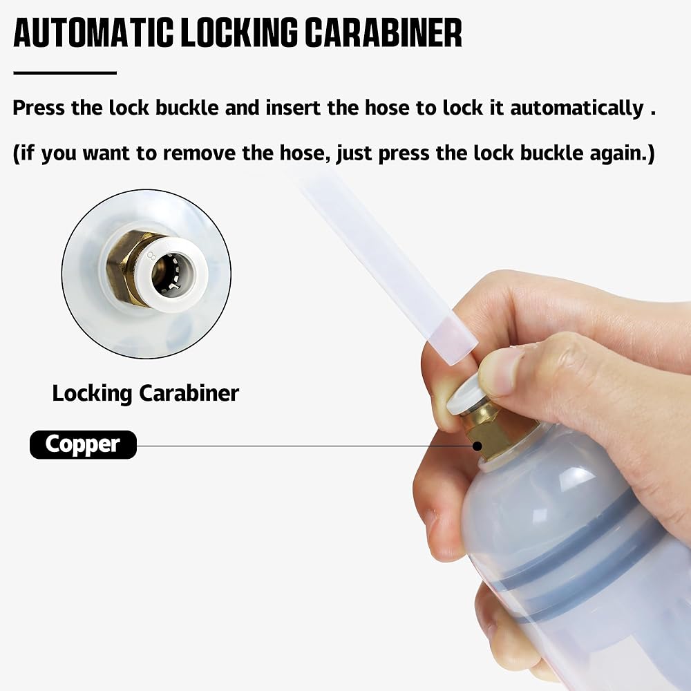 Automatic Locking Carabiner:This Fluid Extractor is simple to operate and easy to use.All you have to do is press the latch and insert the hose to lock it automatically, and to remove the hose, simply press the latch again.