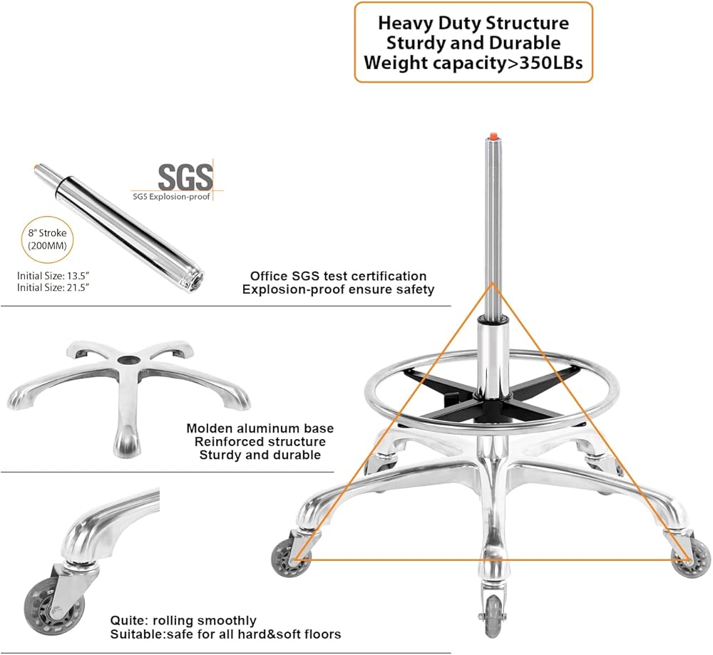 Weight capacity 350lbs extremely safe:used heavy duty base and SGS tested certified pneumatic gas lift, very sturdy and durable.Anti-exploding iron plate as double protection for your safety.