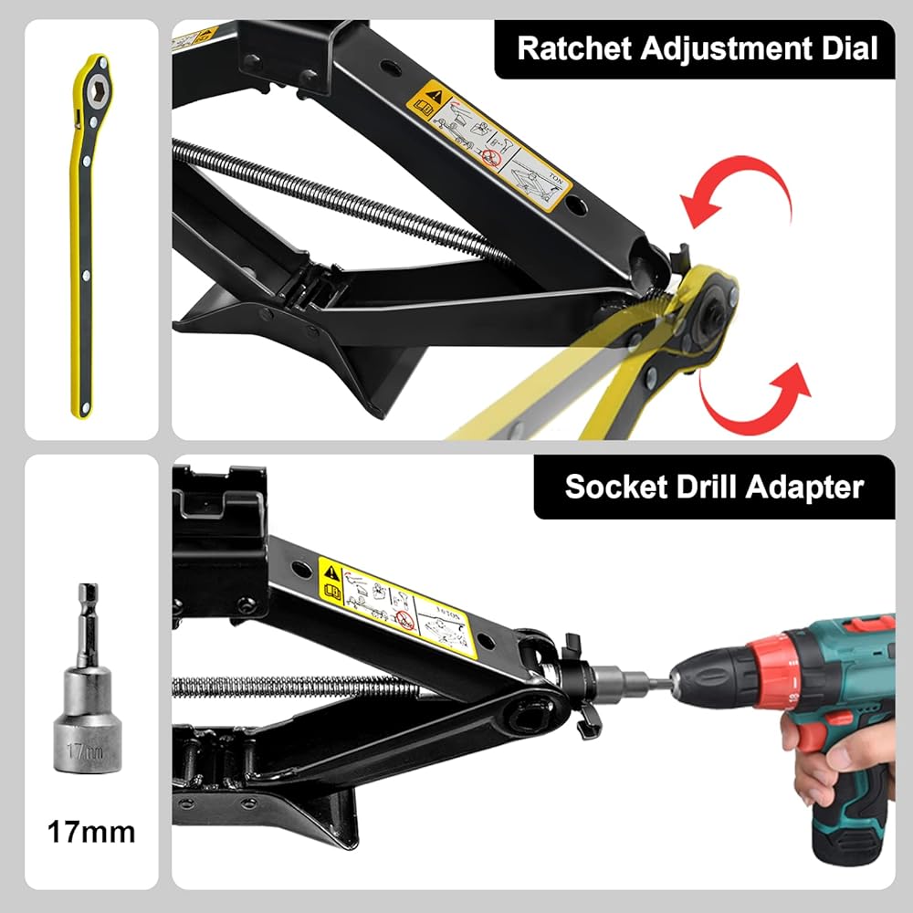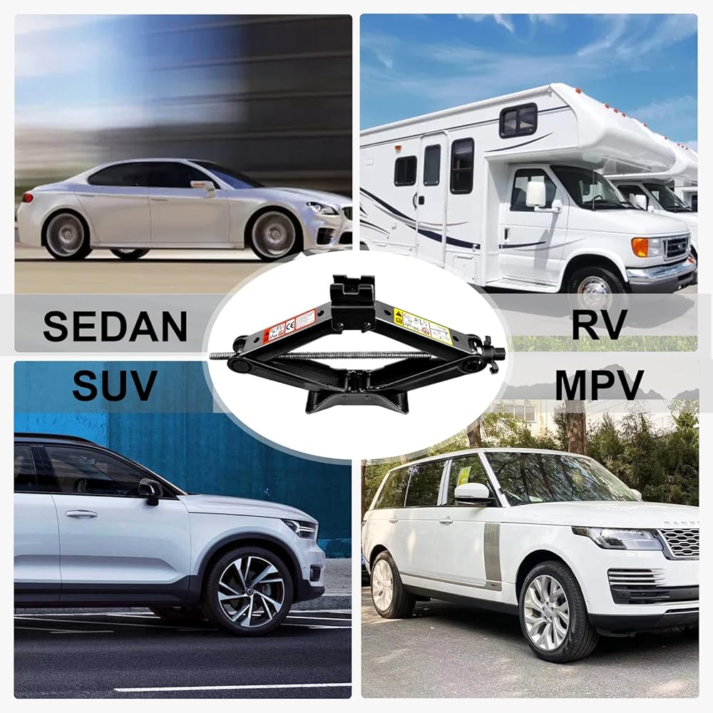 【Widely Used】With the scissor jack you can easily and quickly adjust the height of your vehicles. Designed to fit any vehicle: sedan, coupe, SUV, MPV, hatchback, crossover, wagon and more.