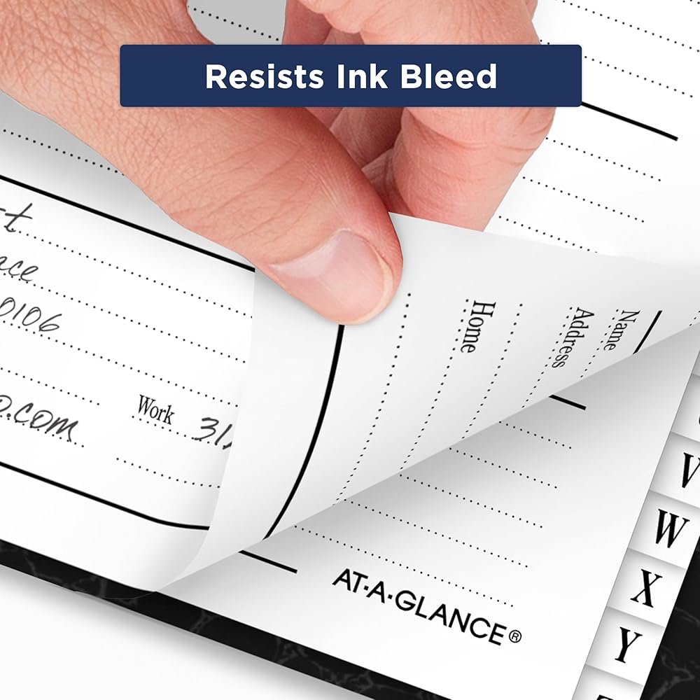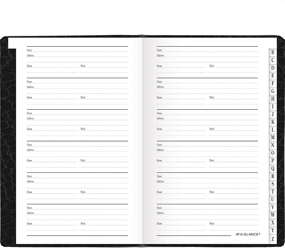 TABBED PAGES – Single letter tabs make it easy to organize by name and quickly locate any contact. Includes room for 600+ entries.