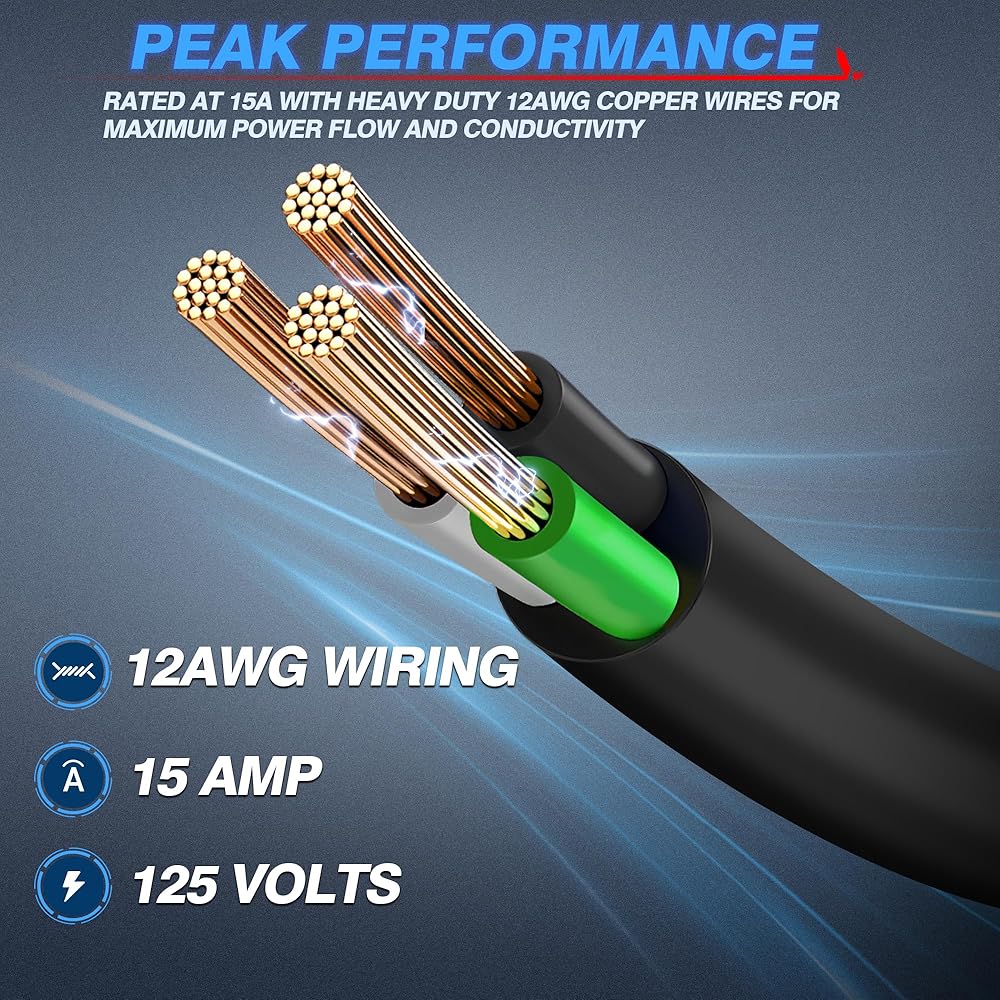 Heavy Duty AC Port Plug - Adopting 3x 14AWG£¨2.08mm2) wires, rated at 15-amps, 250-volts for peak performance and maximum current flow