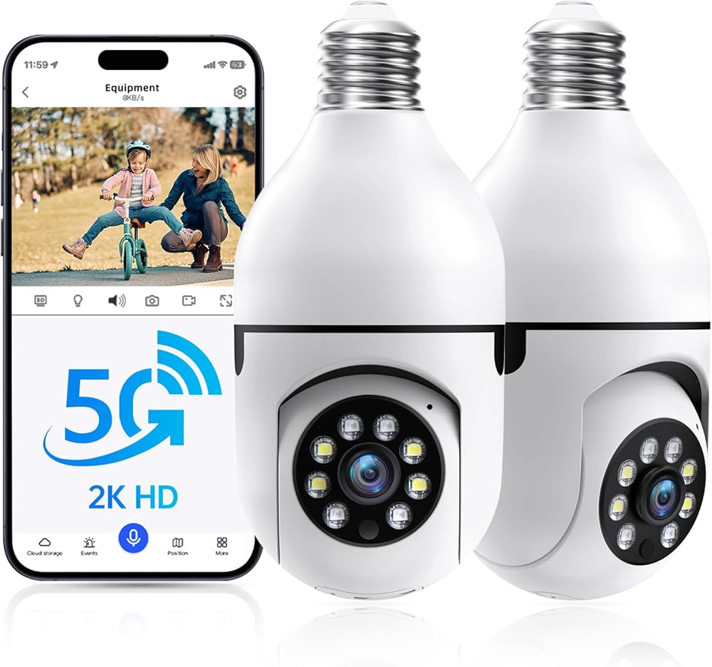 💡【Fast Installation & Setup; 5GHz/2.4GHz Supported】- Installing the light bulb camera is as simple as replacing a light bulb in a standard bulb socket (110V~240V). Set up the camera within 3 minutes using the QR code mode. No drilling, no wiring, and no power cable required. Note: Compatible with both 5GHz and 2.4GHz dual-band WiFi routers.