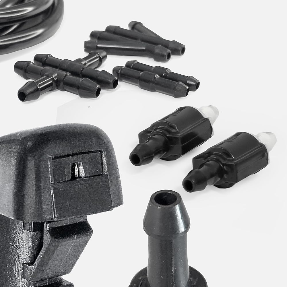[Compatibility]: Car windshield washer spray nozzles are designed to fit a wide range of car models and brands. This ensures compatibility and ease of installation, allowing car owners to upgrade their nozzles without any hassle.