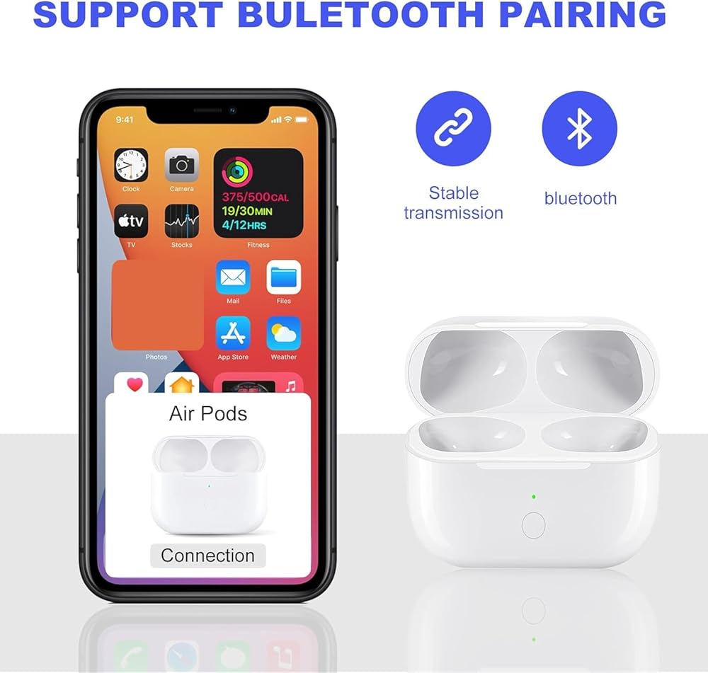 1.First, Open your phone Bluetooth setting and make charging case search Air Pods (Don't plug in charger during pairing process)