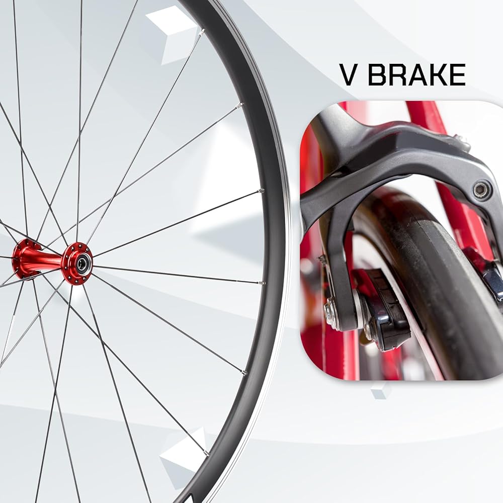 【More Lighter】The bike wheels set uses V brakes, and the disc brake seat is reduced on the hub, which reduces the weight of the bicycle and accelerates the riding speed.