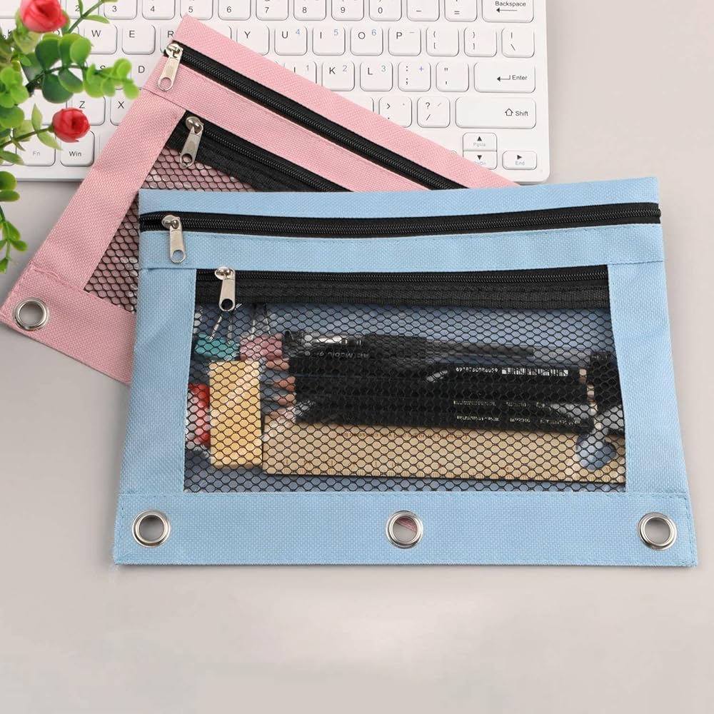 ● Binder pencil pouches is made of durable oxford fabric and Mesh & Clear View Window with two zipper pockets, durable and strong, it's can organize your items well and keep them secure.