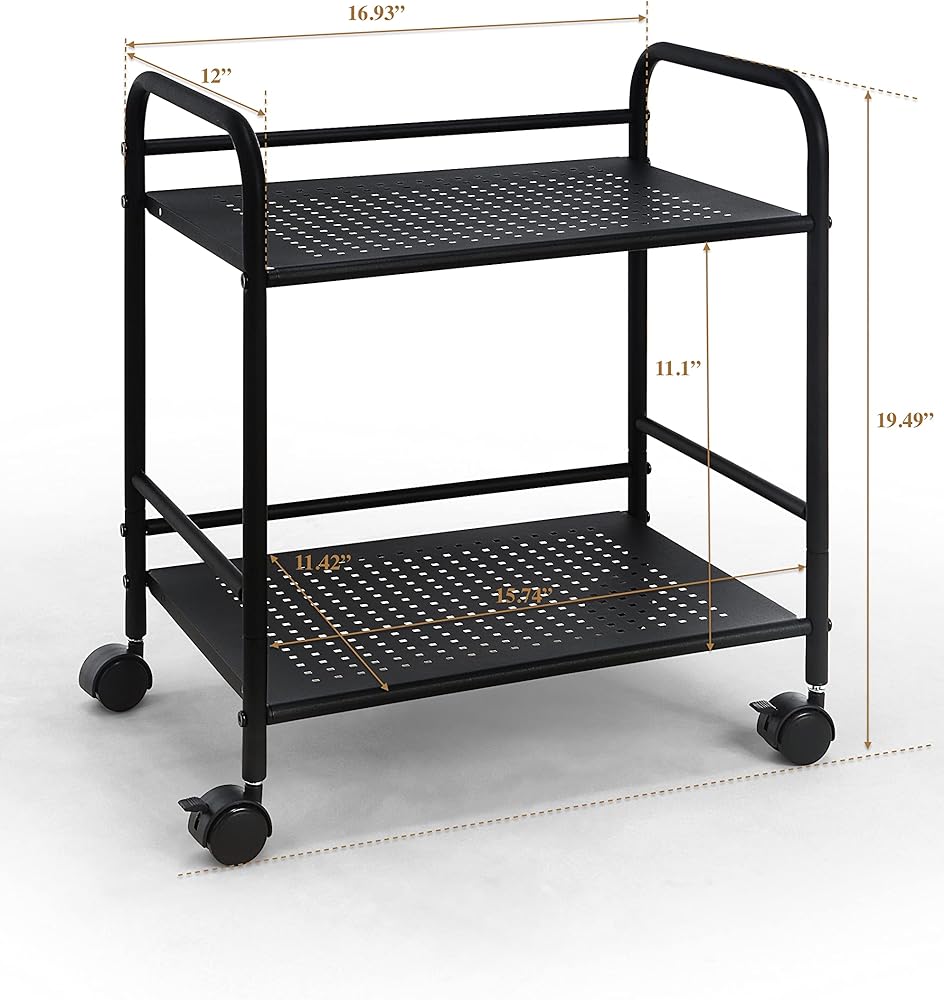 2 Shelf Utility Cart Brings Space-Saving Style Into Your Home. It Can Be Easily Placed Under The Table. It Can Be Used As a 2-Tier Storage Rack, Bookcase, Small Home Printer Rack, File Cabinet, Bedside Table.