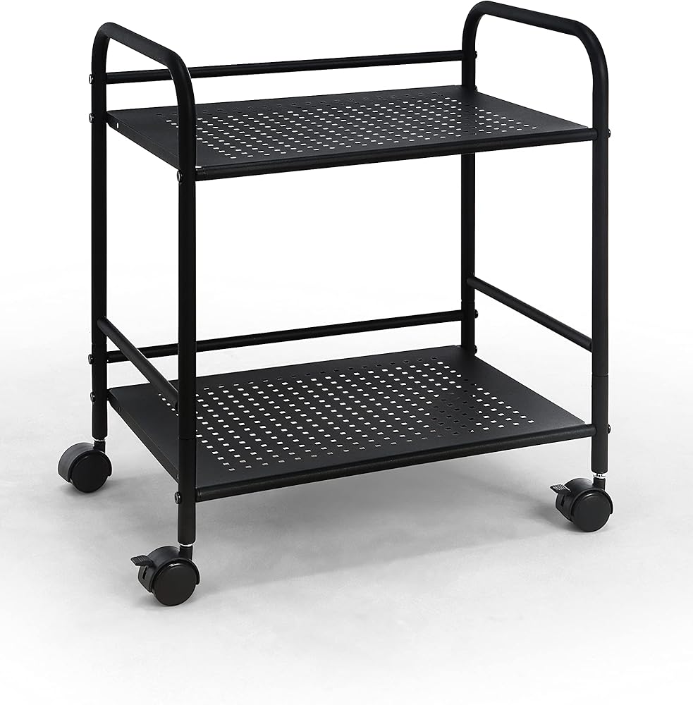 SunnyPoint 2-Tier Metal Rolling Utility Cart – Mobile Storage Shelf with Caster Wheels – Small Space Organizer for Home, Office, Bedroom, Kitchen (BLK)