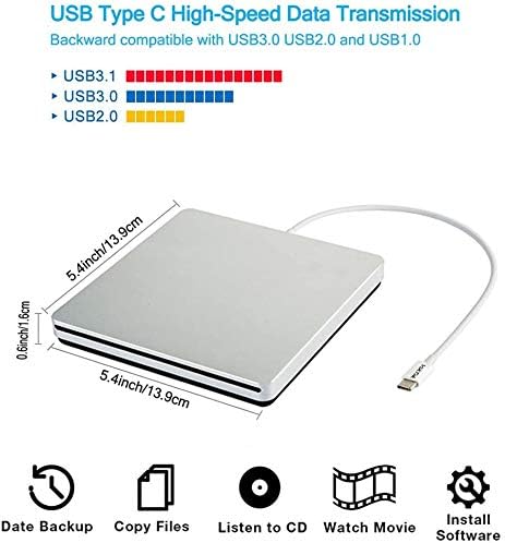 USB-C Superdrive External DVD/CD Drive for Laptop,USB3.0/Type-C CD/DVD Burner External DVD Drive Portable DVD Player for Laptop Desktop PC Apple Mac Windows 11/10/8/7/XP Linux OS