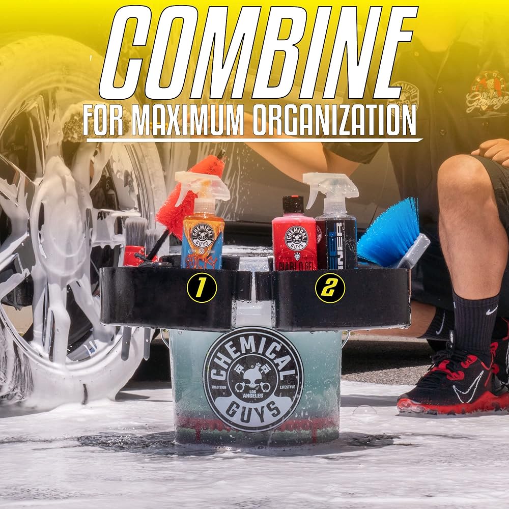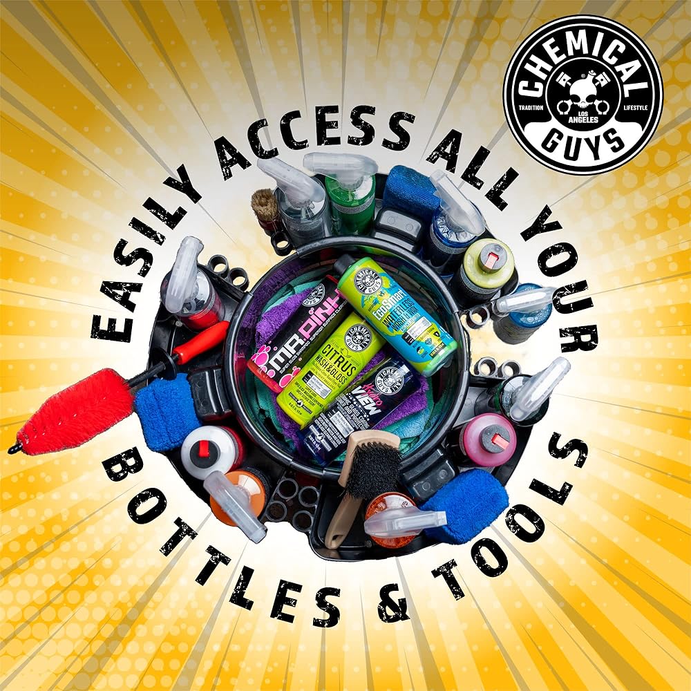 STAY ORGANIZED - Designed to fit on your standard 12” diameter bucket and dolly, supplies are never out of reach! Its curved body contours perfectly with your Chemical Guys bucket and dolly so you can take your tools all around your car, house, yard, and more.