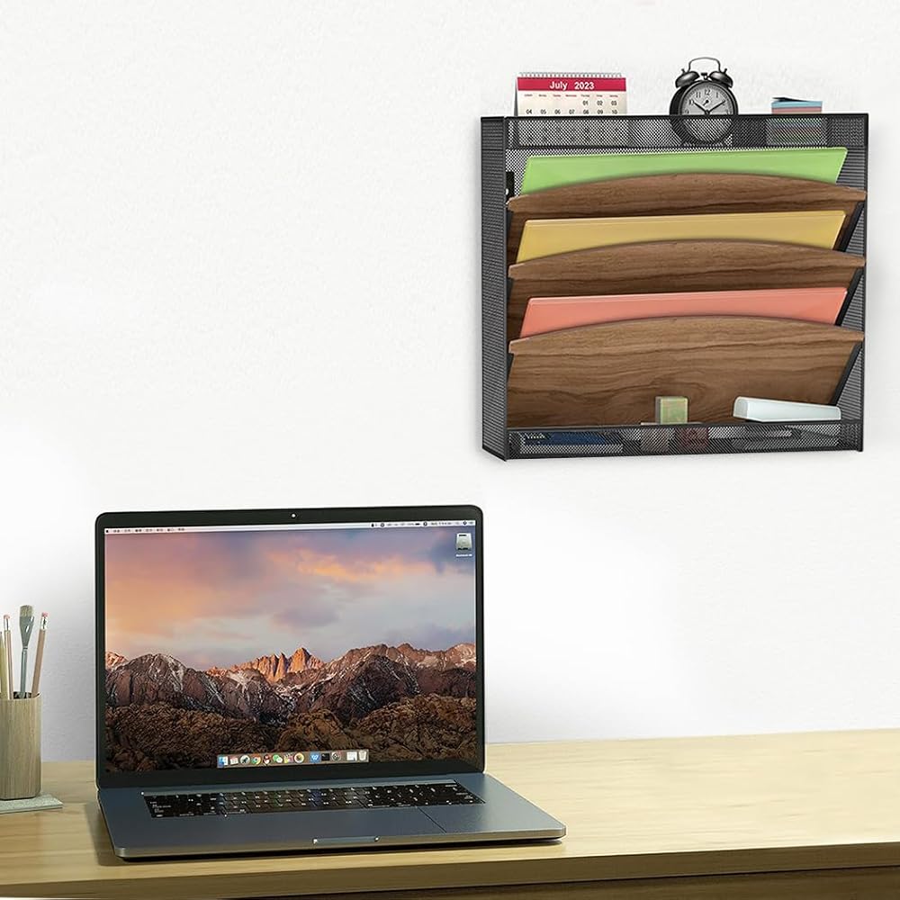 ✅【LUCYCAZ WALL FILE ORGANIZER】This wood wall file organizer mesh is composed of high quality metal and MDF. Wood and metal structure is stable and elegantly vintage, metal surface of the wall file holder is oxidation-resistant and rust-resistant. This is a quality wall organizer for office.