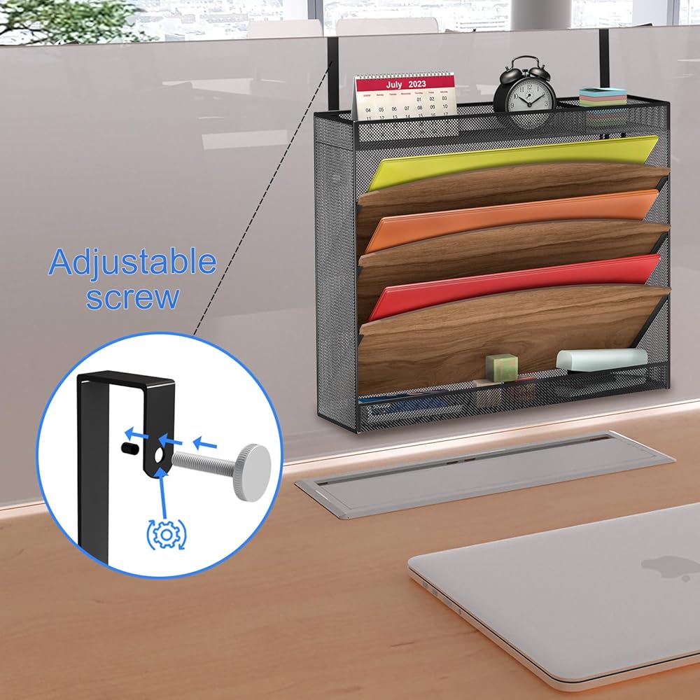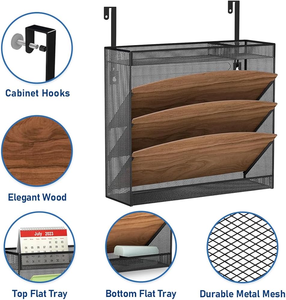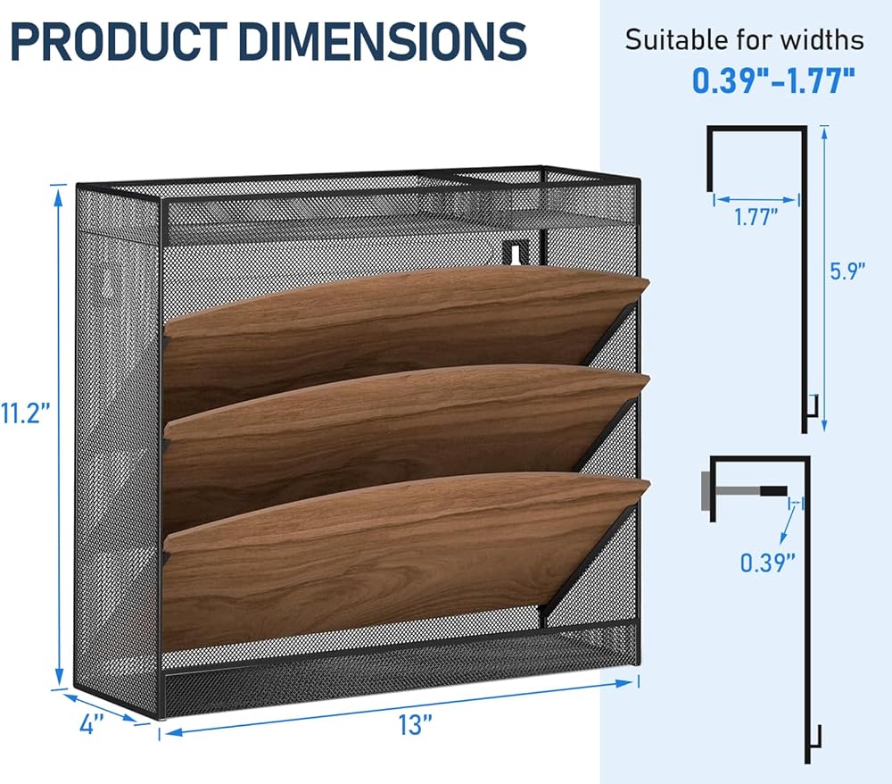 ✅【5-TIER LARGE CAPACITY】Hanging File Organizer measures: 13L * 4W * 11.2H(inch), it has 5 separate cascading slots, top and bottom tray is 13*4 inches, which can hold stationary, desk accessories. Pockets of the wall file holder are deep and wide enough to keep mails and magazines neatly organized by simply slipping them in.
