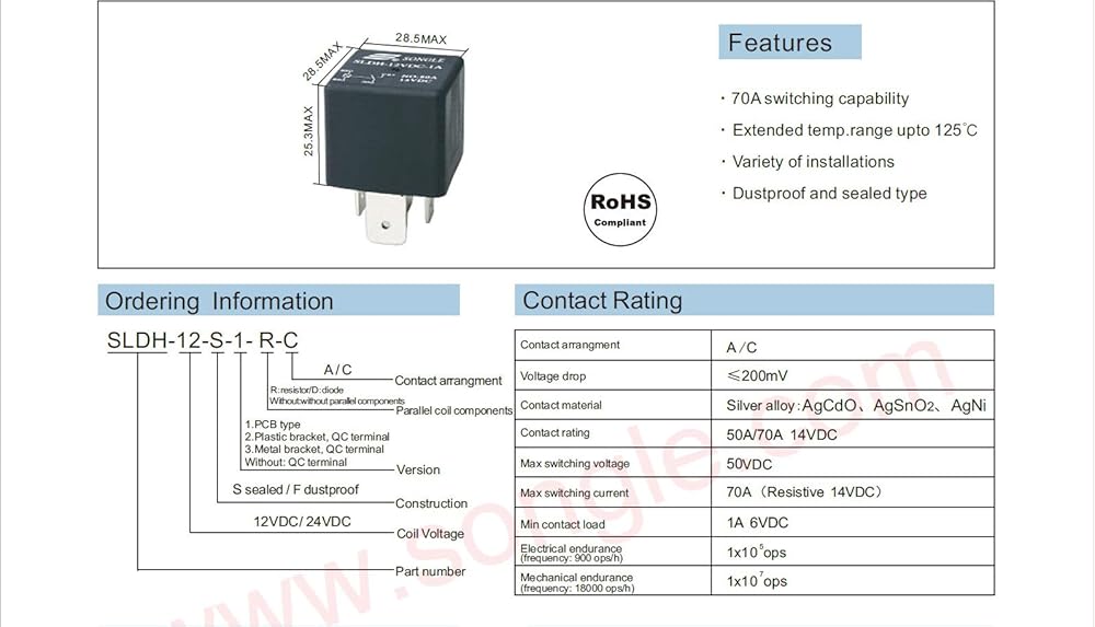 - 80A 5-pin relay and it is suitable for any 12V applications.