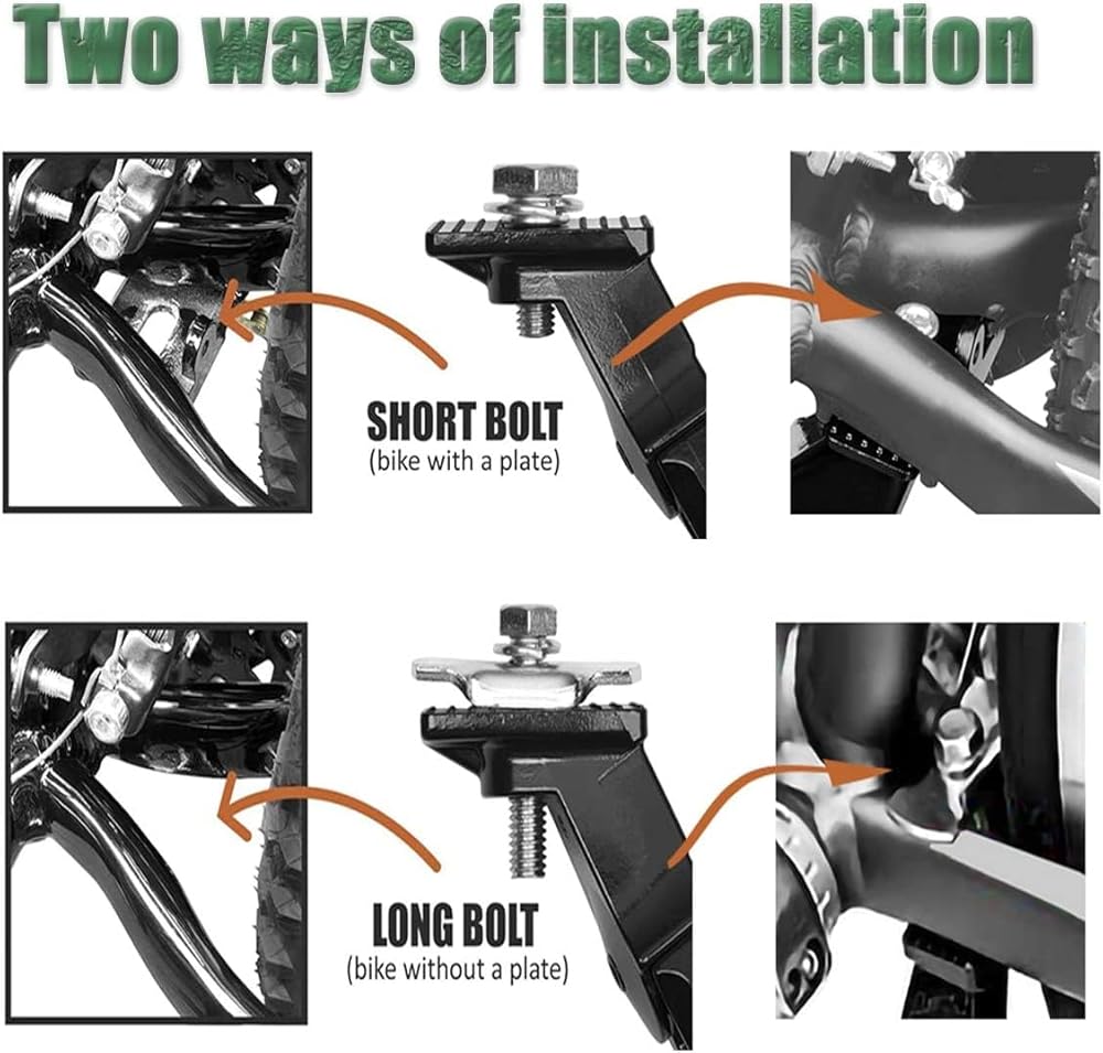 NON-SLIP FOOT: The Aluminum Alloy Bicycle Kickstand comes with an wide anti-slip reinforced rubber foot to prevent slipping on wet surfaces and sinking in mud.