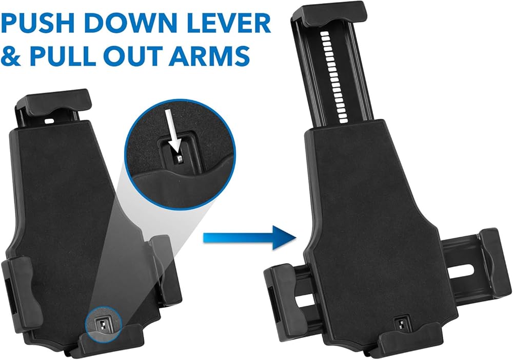 Secure Grab & Go - Locking universal tablet mount with quick release clamp for a mobile tablet kiosk; Keyed locking security system allows for easy removal