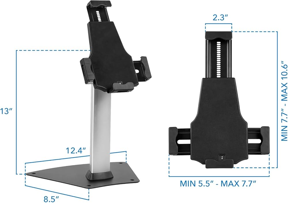 Future Proof Tablet Kiosk - Upgrade your tablet, leave the kiosk; Universal tablet mount cradle fits iPad, Galaxy, Surface & other 7.9 to 10.5 inch tablets. COMPATIBLE WITH GENERATION: iPad Air (4th, 5th), iPad (7th, 8th, 9th, 10th), and iPad Pro -11 inch (2nd, 3rd, 4th)
