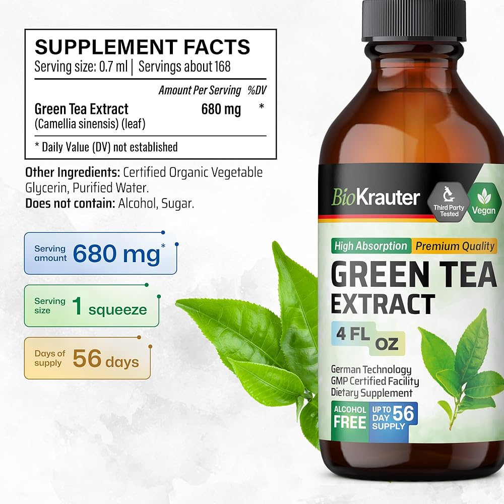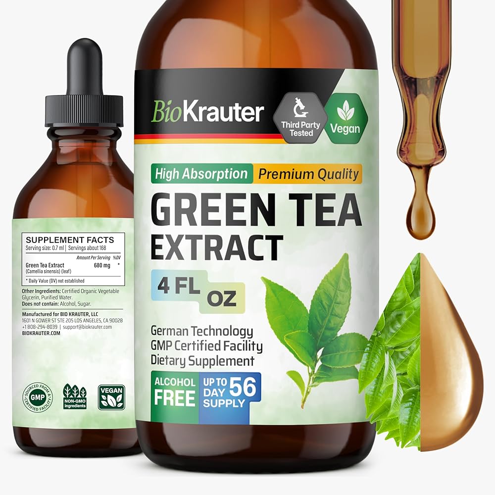 BIO KRAUTER® Green Tea Extract - Liquid Pure Vegan Green Tea Supplement 680 mg per Serving 4 Fl.Oz 56-Day Supply - Natural Antioxidant & Immune Support, Used for Daily Wellness - Alcohol & Sugar Free