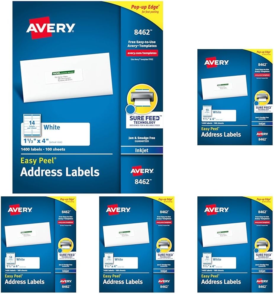 Handle all your bulk mailing jobs with incredible ease and efficiency using these multipurpose label stickers. Avery bright white labels blend better than basic labels on white envelopes. Avery labels provide better adhesion than basic labels with its Ultrahold permanent adhesive that sticks and stays, guaranteed. Printers aren't perfect, so we did something about it: These mailing labels are optimized for inkjet printers and use Sure Feed technology to deliver a more reliable feed through your printer and prevent misalignments and jams. No more wasted labels! These address labels have an Easy Peel design for quick application. They're ideal for creating bulk mailing labels, organization labels, classroom labels and personalized gift tags for your wrapping paper, party favor bags or holiday cards. These bulk mailing labels are also excellent for shipping, filing, organizing items in your office, kitchen, closet, garage and classroom organization. Easily add a personal touch to your custom address labels with thousands of free designs and templates on the Avery site. This pack of 1,400 Avery address labels makes staying on top of all your bulk mailing, organization and filing jobs simple and stress-free.