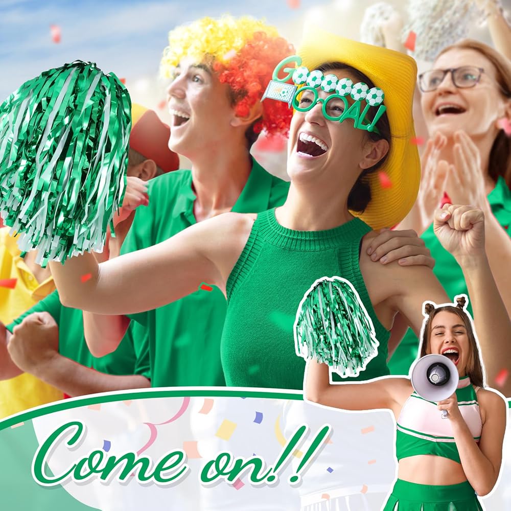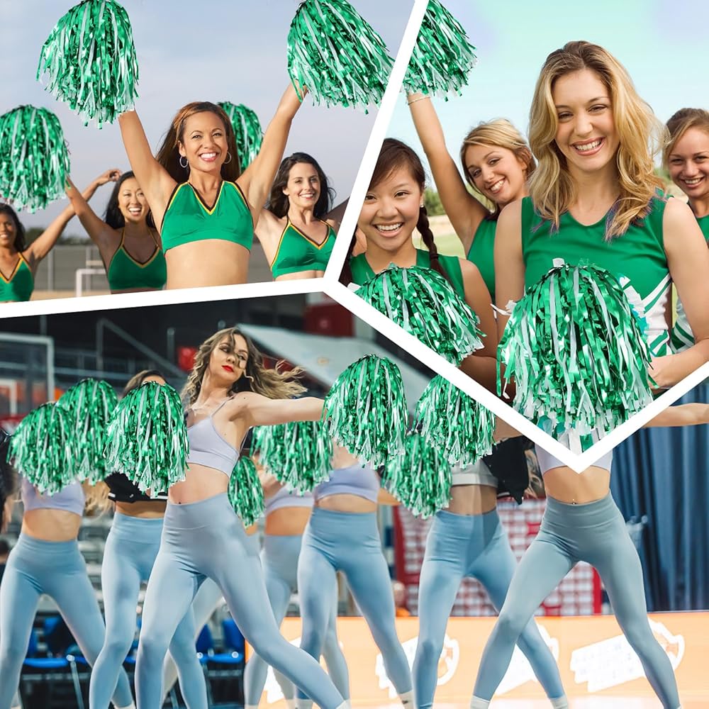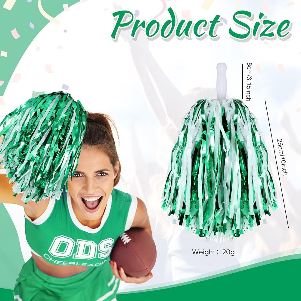Proper Size: these metallic cheering squad pompoms measure approx. 9.84 inches/ 25 cm, the plastic handle is approx. 3.15 inches/ 8 cm, approx. 13 inches/ 33 cm in total, each mini pom pom weighs approx. 20g, lightweight for cheerleaders to perform their routines with ease, they are also easy to carry and store