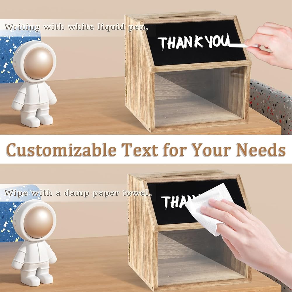 👍【ERASABLE CHALKBOARD LABELS】: The donation box has chalkboard labels for creating messages or labelling content. You can easily label the contents of the donation box and customise it to suit your event. In addition, the clear acrylic window allows you to easily view the contents of the box.